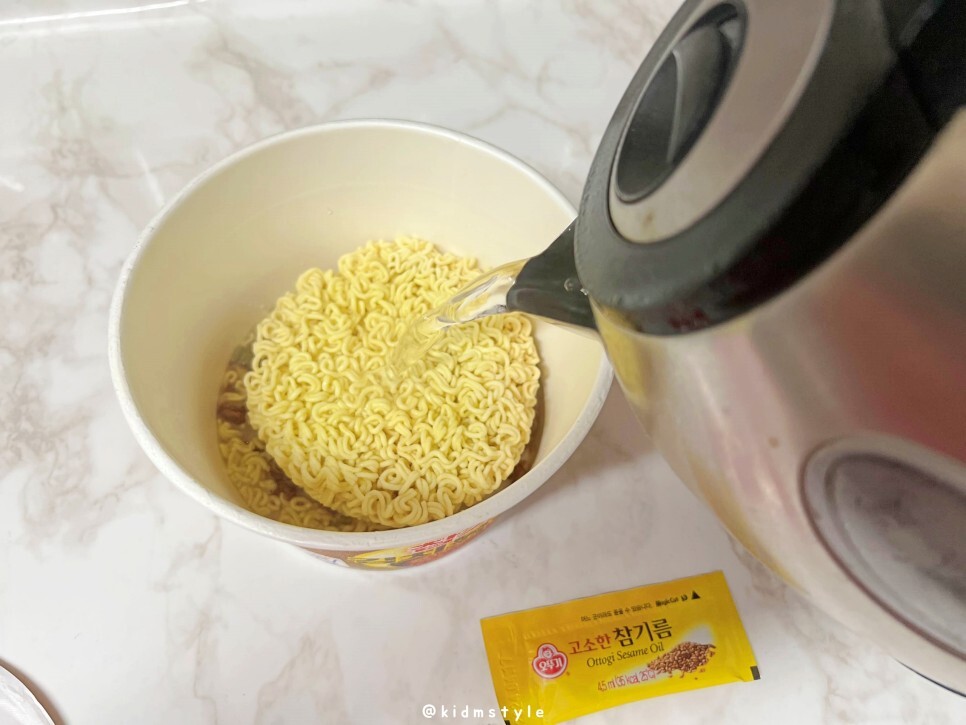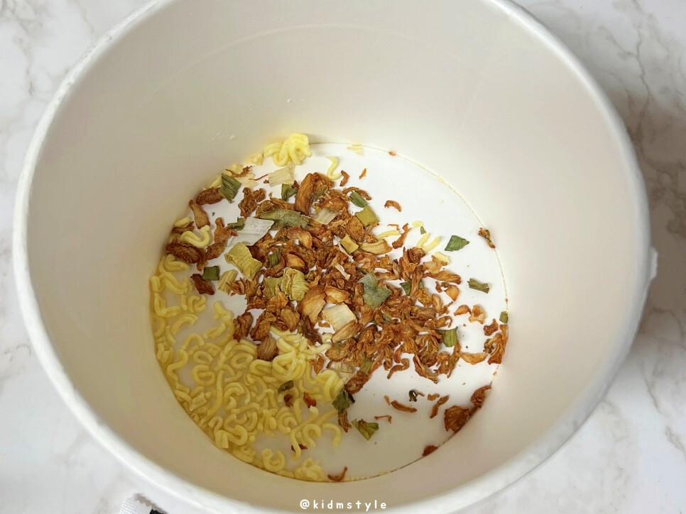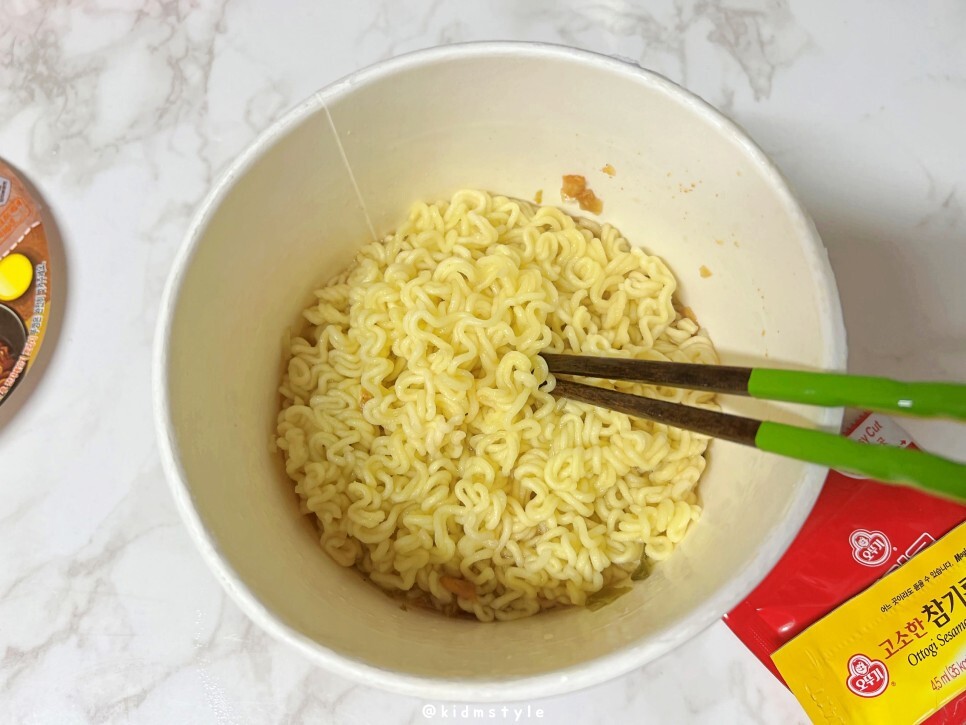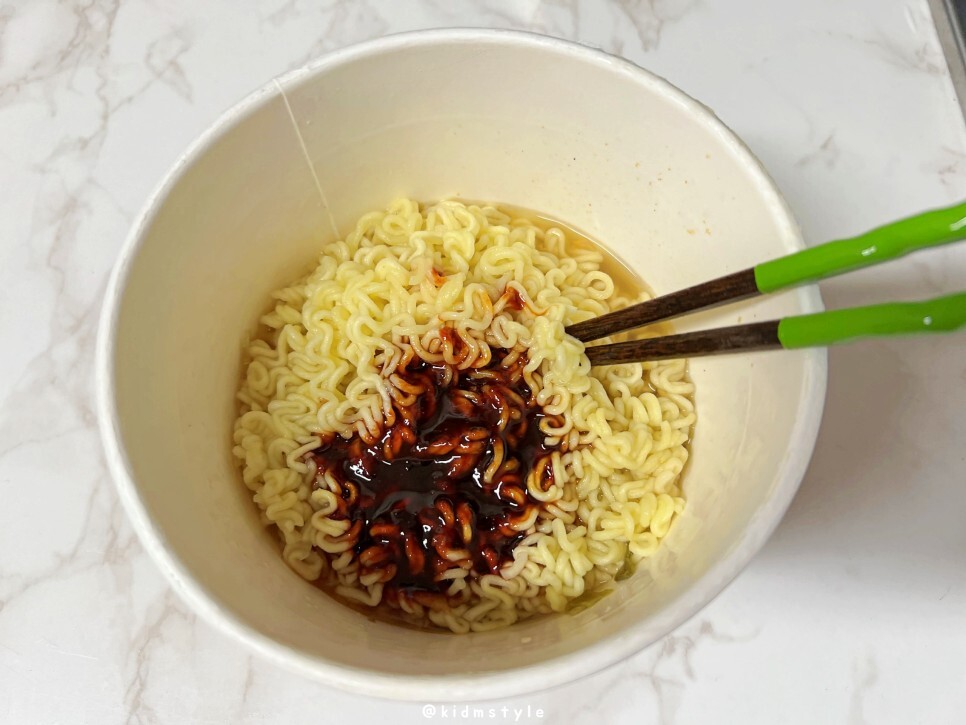끓는 물을 붓고 3분간 놔둔 다음 물을 버리면 됩니다. 조리 후 전자레인지에 30초 돌리면 더 맛있다고 합니다.