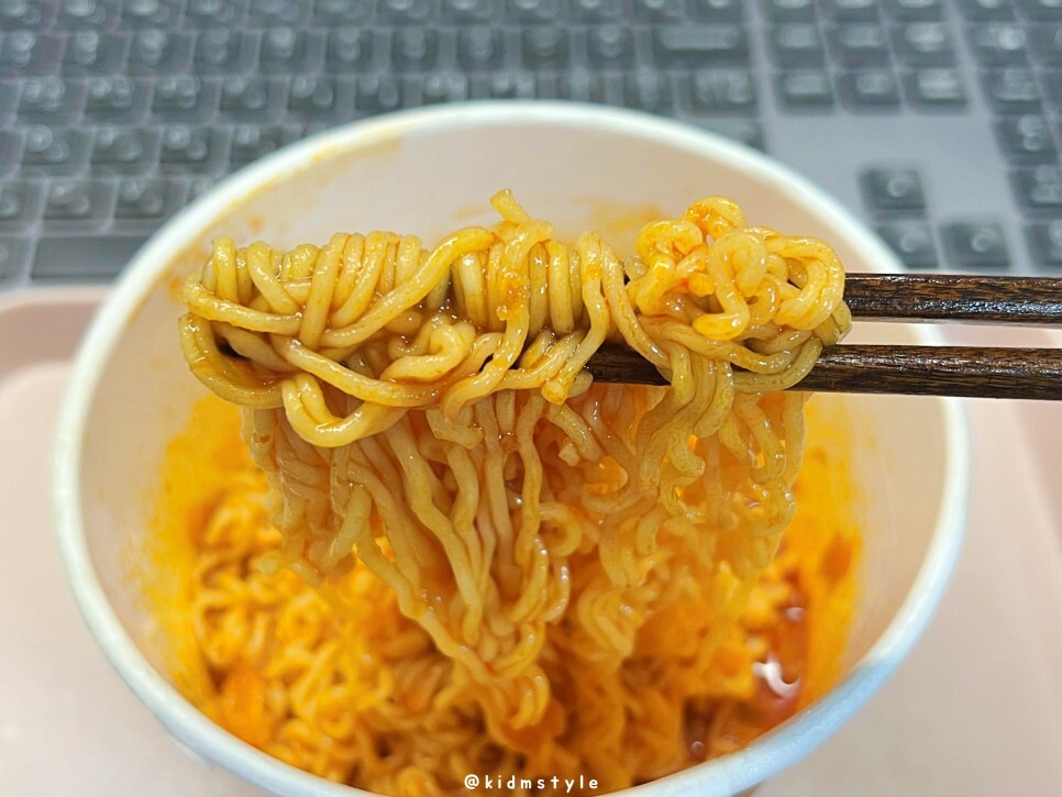 아주 약간 매운 정도의 매콤함을 보여주기에 어려움 없이 맛볼 수 있는 볶음면인 것 같네요. 식사로 먹기에는 양이 조금 부족한 느낌이라 삼각김밥, 주먹밥 등과 곁들이면 좋을 것 같습니다. 간식으로 먹기도 딱 좋겠네요.