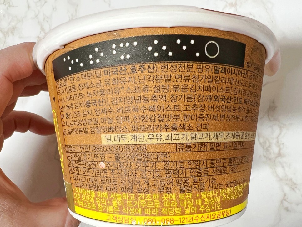 원재료명을 참고하시기 바랍니다. 제품명이 시각장애인을 위한 점자로도 표시되어 있네요.