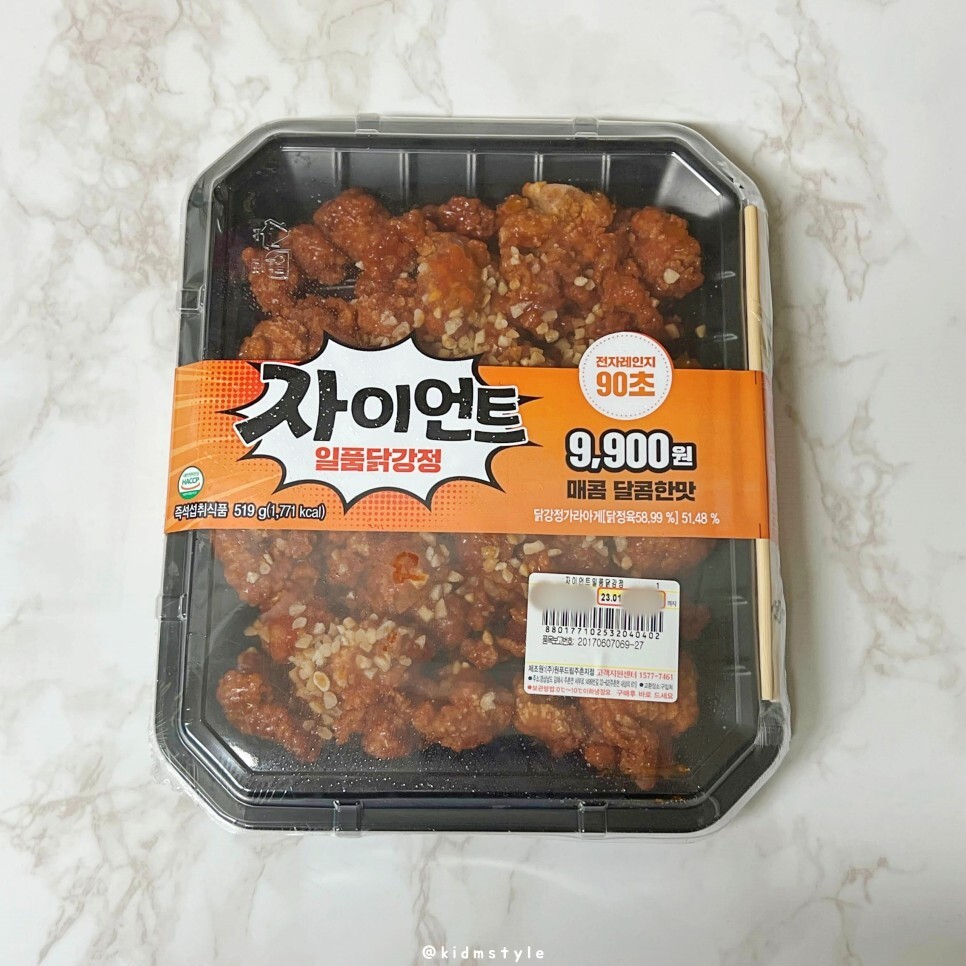 CU에서 9,900원에 구입할 수 있는 자이언트 일품닭강정이라는 제품입니다. 닭강정집에서 구입해도 되지만 제약이 있을 때 편의점에서 구입하는 것도 나쁘지 않습니다.