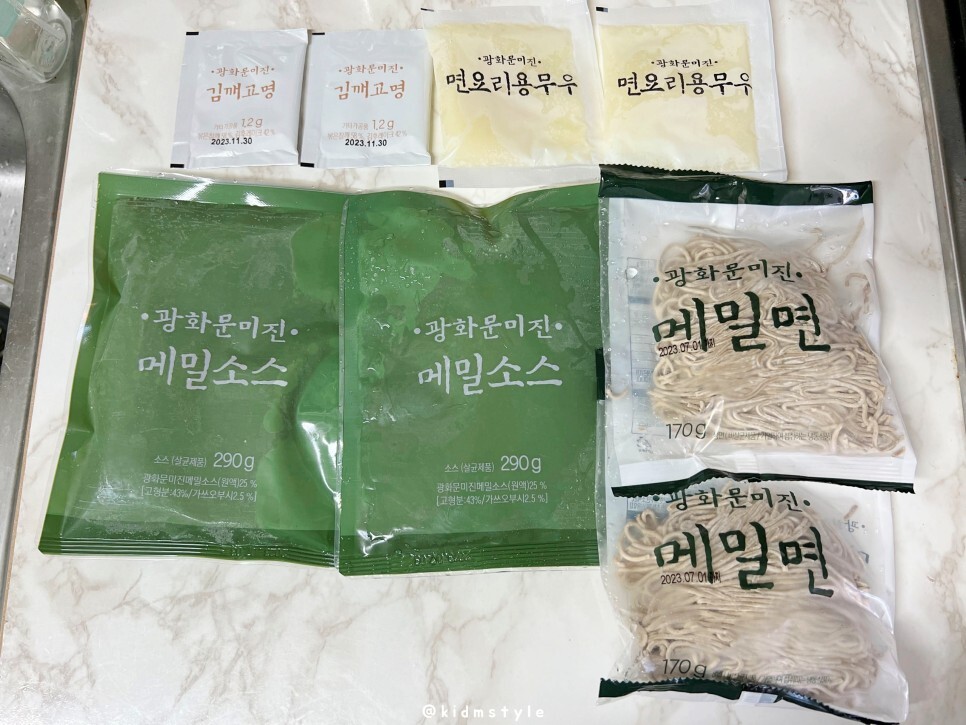 광화문 미진 메밀국수라는 제품입니다. 얼핏 사진을 봤는데 아주 싫어하는 사람의 얼굴이 떠올라 움찔했네요. 다들 공감하시죠? 이 제품은 마켓컬리에서 9,900원에 구입할 수 있습니다. 현재 10% 할인 중이네요.