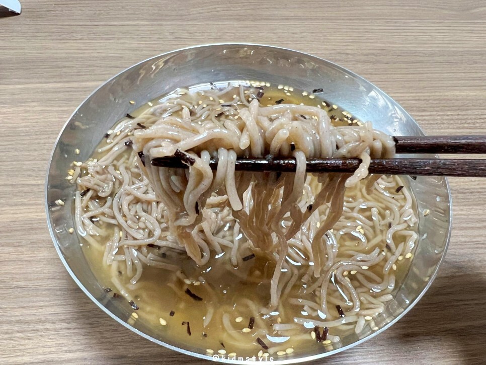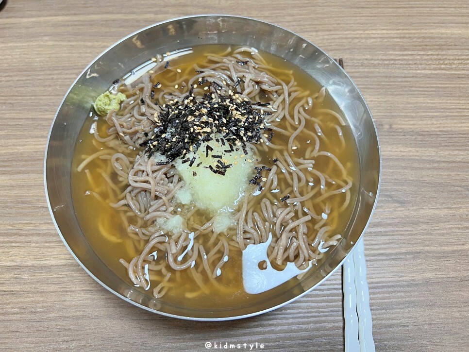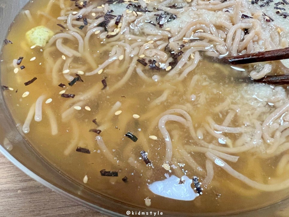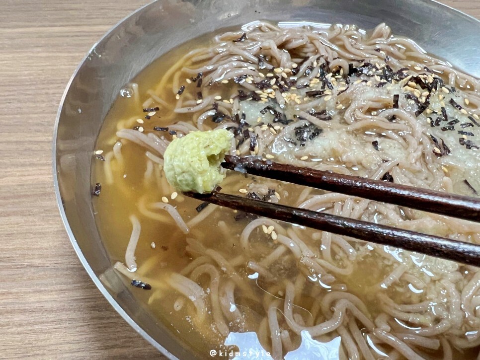 면은 메밀 향이 많이 나는데 생각 외로 꺼끌거림은 덜하고 부드러운 편입니다.