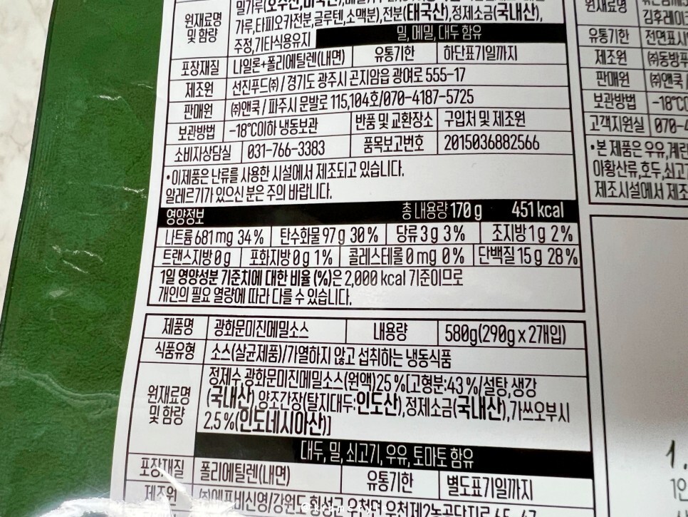 소스와 무, 그리고 김깨고명의 원재료도 참고하시고요.