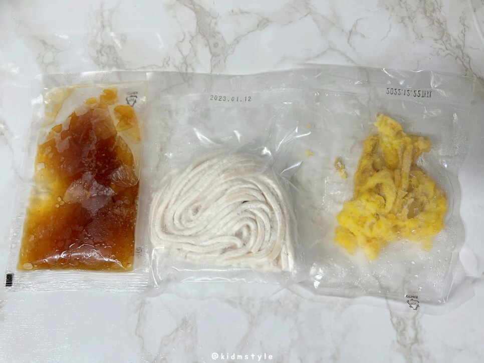 육수, 면, 튀김이 각각 포장이 되어 있습니다.
