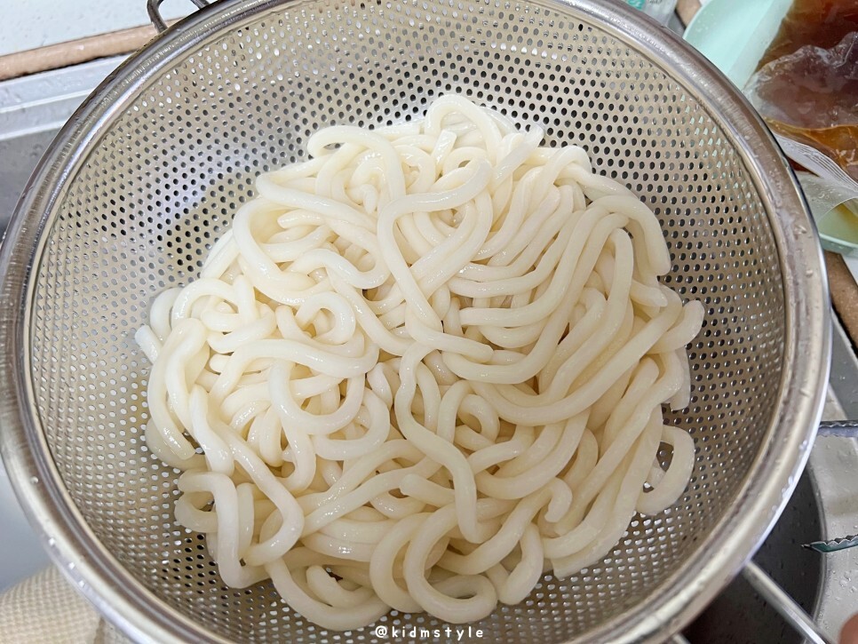 - 삶은 우동면은 물기를 제거한 후 그릇에 담아둡니다.