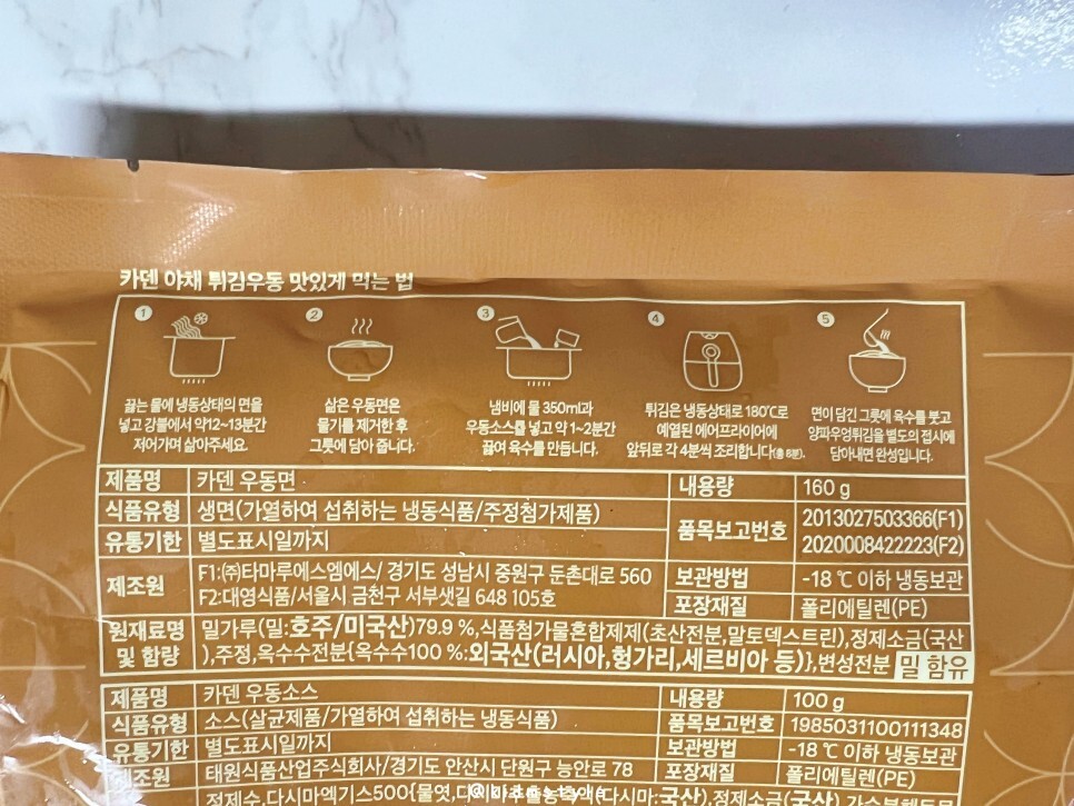 제품 포장 뒤에는 우동면과 우동소스 등 구성에 관한 다양한 정보가 적혀있습니다.