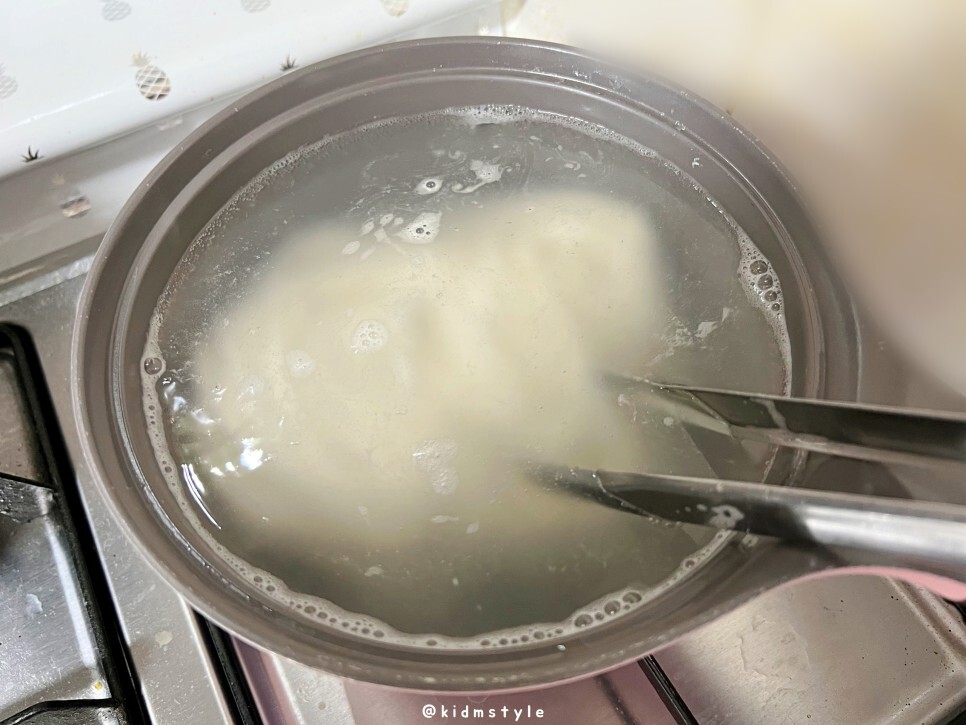 - 끓는 물에 면을 넣고 강불에서 12 ~ 13분 정도 저어가며 삶아줍니다.