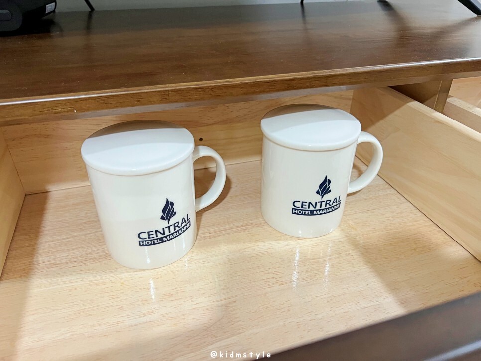 티브이 아래 서랍을 하나하나 열어봅니다. 커피잔 2개가 눈에 들어오고요.