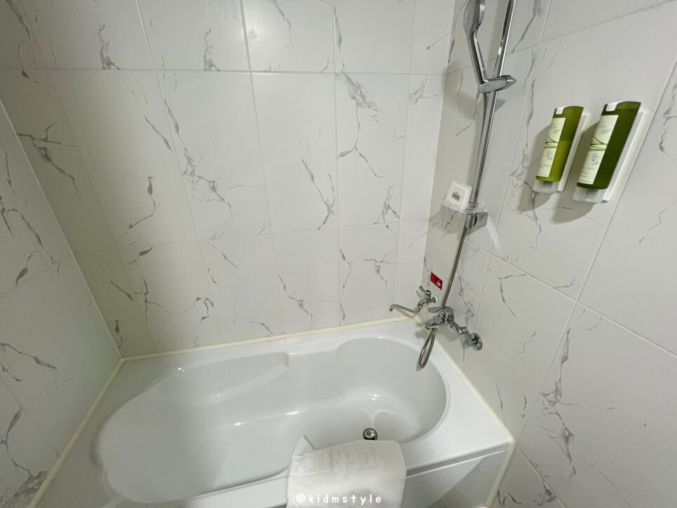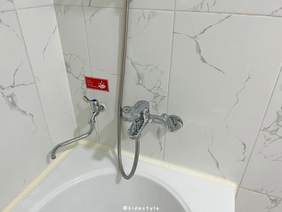 욕조가 있습니다. 왼쪽 수전은 뜨거운 온천수가 나옵니다. 나중에 물 받아놓고 씻으니 너무 개운하고 좋더군요.