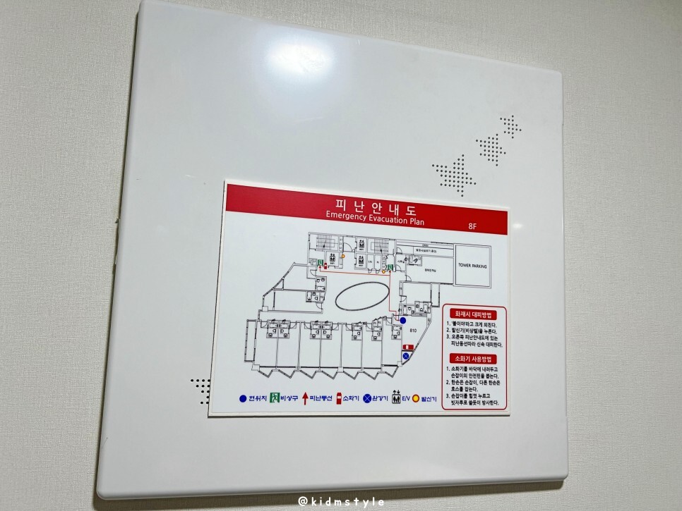 화재 및 재난을 대비해 피난안내도는 집중해서 살펴보고요.