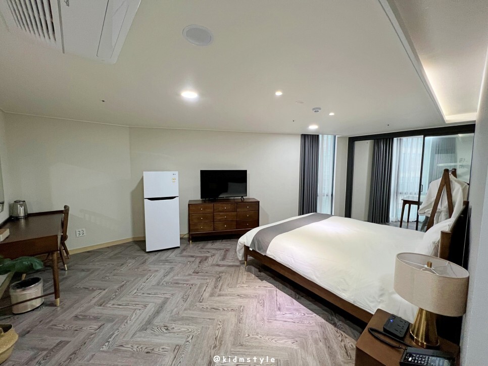 드디어 입장합니다. 사진상으로 실내가 꽤 넓어 보이는데요. 실제로도 넓습니다. 평일 기준 시티뷰 12만 원짜리 방입니다.