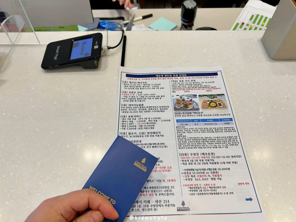미리 예약을 하였기에 확인 후 안내문과 카드 키를 받고 체크인을 마칩니다.