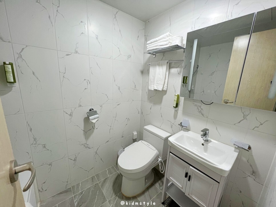 욕실은 이렇습니다. 비데가 달린 변기입니다. 수건이 넉넉해서 좋네요.