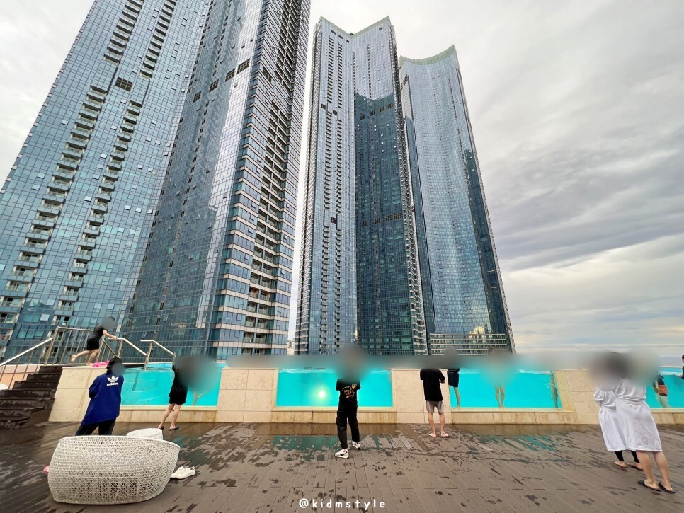 옆면이 유리로 뚫려있는 형태라 인스타에서 시선을 끌기에는 충분했던 것 같습니다. 수영하는 사람은 1도 없고 전부 사진 찍느라 정신없습니다. 저는 수영을 하고 싶었는데 오히려 민폐가 될 것 같아서 마음을 접습니다. 주객이 전도된 느낌이네요.