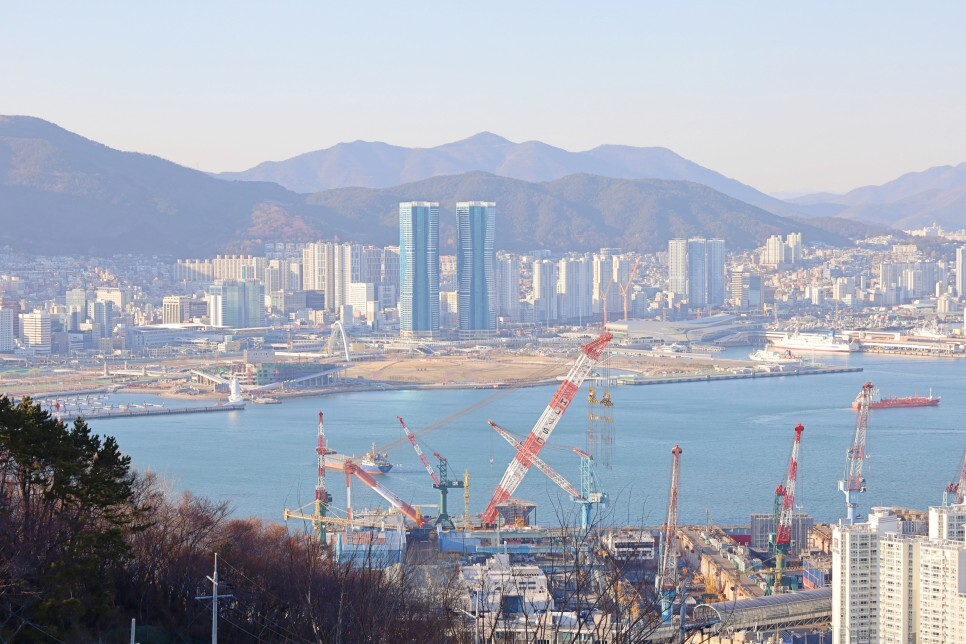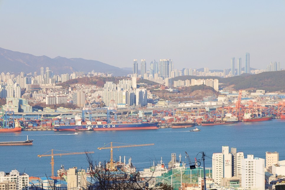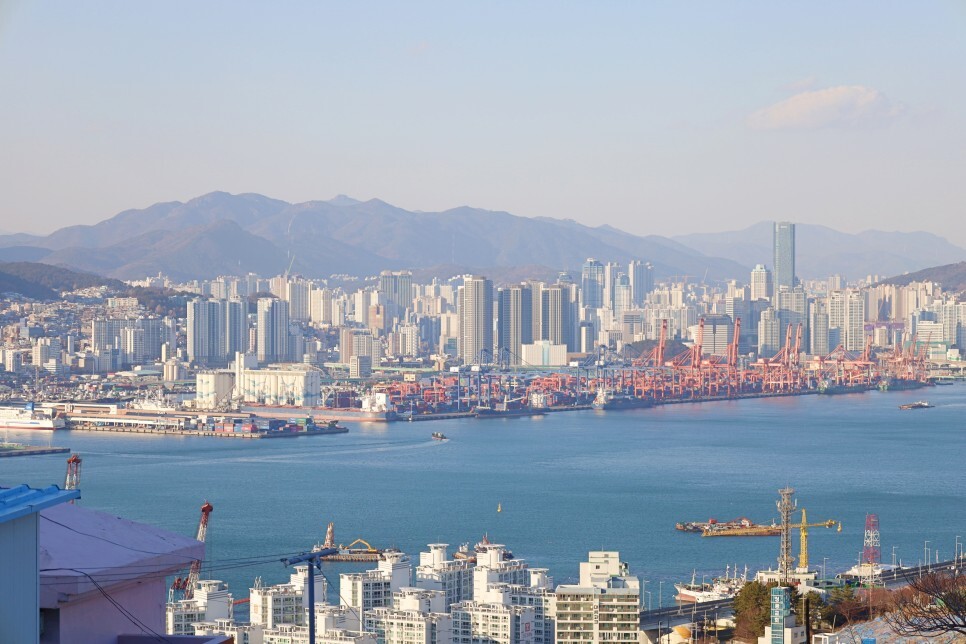 한때 부산항의 물동량을 대부분 차지했던 북항의 컨테이너 부두 모습도 보이고요. 저 멀리 백양산, 금정산까지 보입니다. 높은 건물이 많이 들어서고 있지만 여전히 부산의 매력을 찾기에는 부족함이 없어 보입니다.
