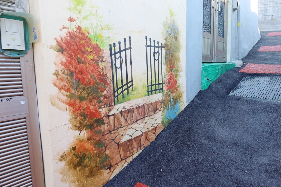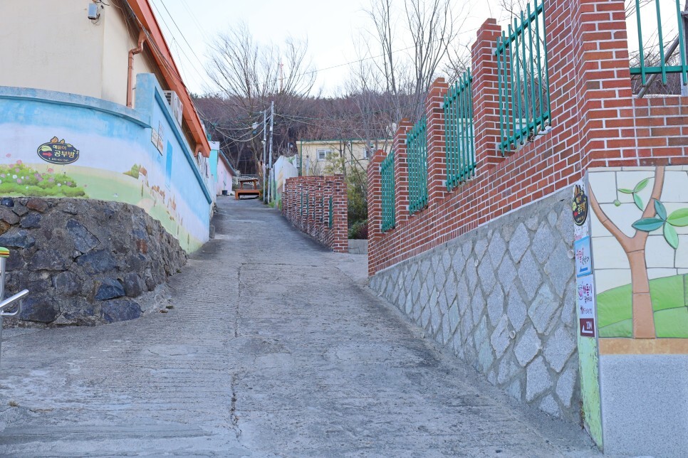마을을 이리저리 둘러봅니다. 오르막길을 오르며 심심하지 않게 예쁜 벽화가 곳곳에 그려져 있어요. 포토존으로도 좋고 가만히 보고만 있어도 예쁜 동화마을에 놀러 온 것 같은 착각이 듭니다.
