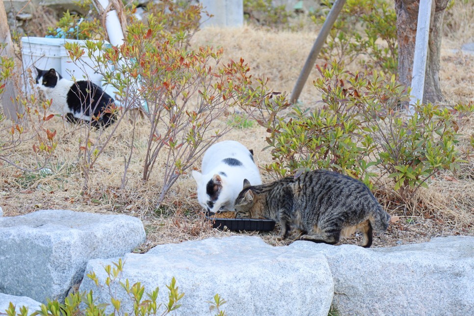 '어이~ 카메라 든 아재! 어디서 왔냥?'이라고 인사하듯 저를 한참 쳐다보네요. 길고양이들이 제법 보였는데요. 하나같이 포동포동 살이 찐 것을 보니 주민분들이 많이 챙겨주시나 봅니다.