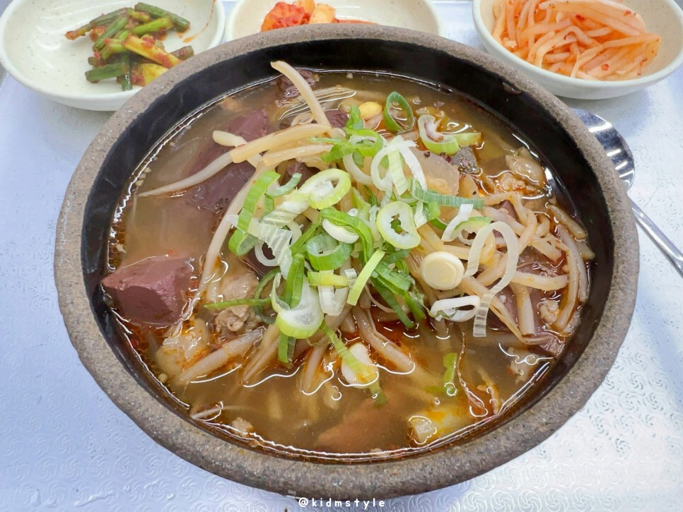 오늘은 맛에 대한 표현보다는 추억을 곱씹기로 합니다. 뚝배기 가득 들어가 있는 국밥, 그 위로 쏭쏭 썰어놓은 대파까지 군침이 돌기에는 충분합니다.