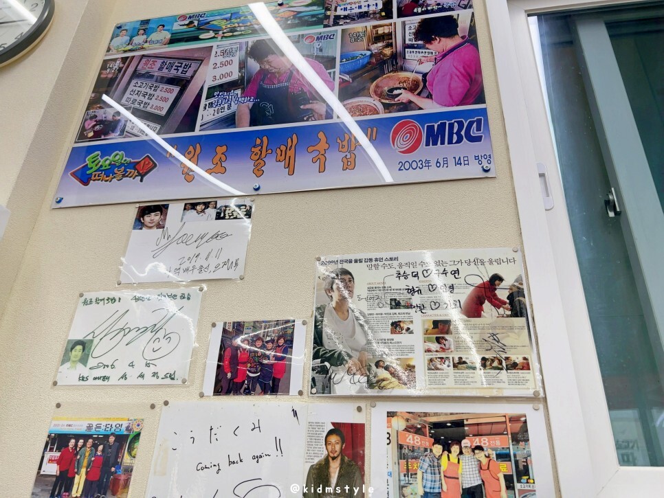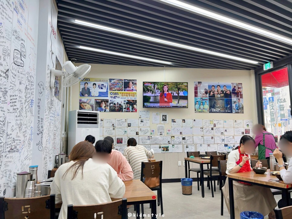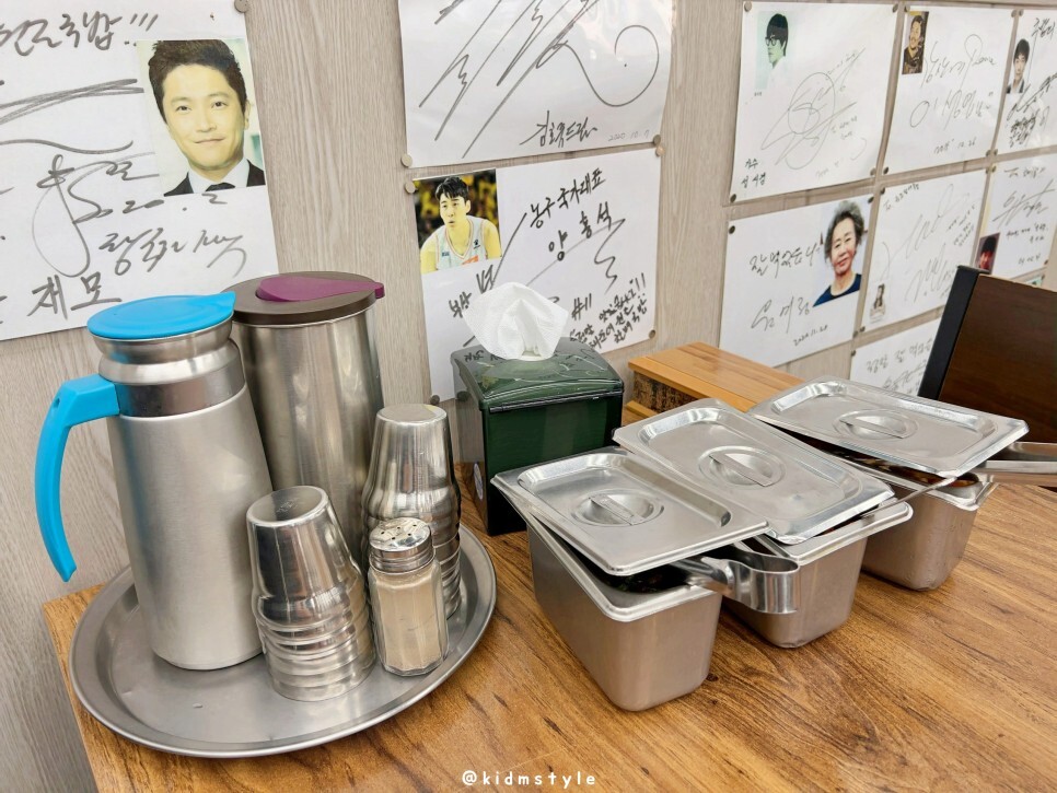 물, 수저, 반찬은 테이블에 놓여있으니 접시에 원하는 만큼 덜어 먹으면 됩니다. 벽에 다양한 인물들의 사인 등 방문 흔적을 보니 인기 많은 맛집임을 실감합니다.