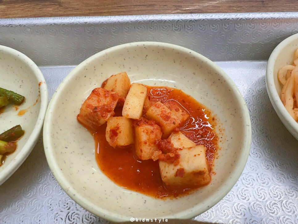 깍두기는 적당히 잘 익은 평범한 느낌입니다.
