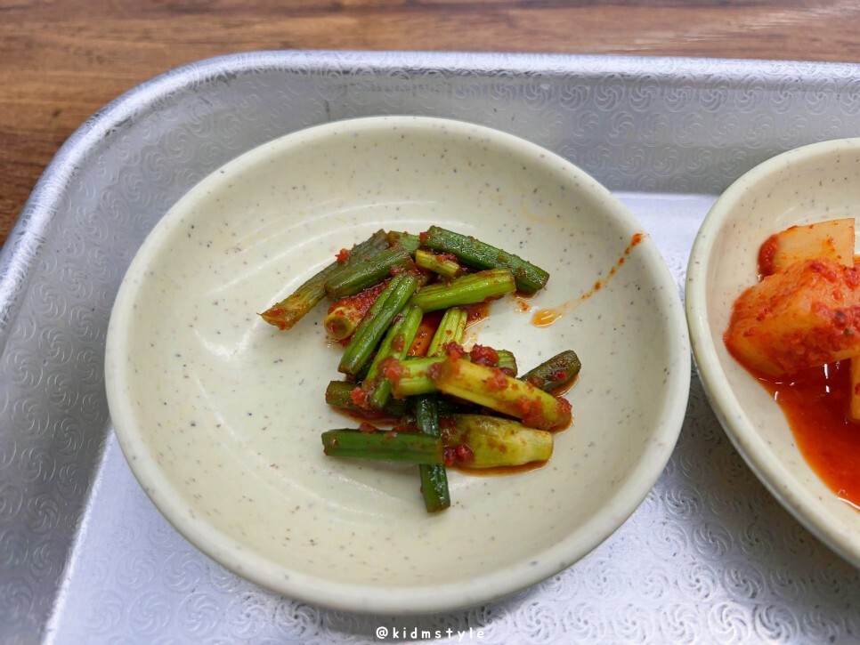 마늘종, 깍두기, 무생채 등 반찬 3종 세트는 여전하네요. 요구르트 하나씩 같이 나오던 건 이제 없어졌나 봅니다.
