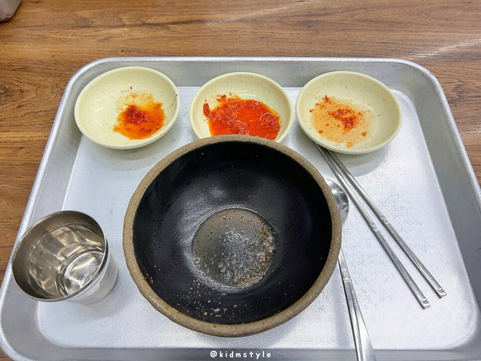 한 뚝배기를 비우는 시간은 그리 오래 걸리지 않았습니다. 오래간만에 추억과 함께 맛보다 보니 더 배가 부르네요.