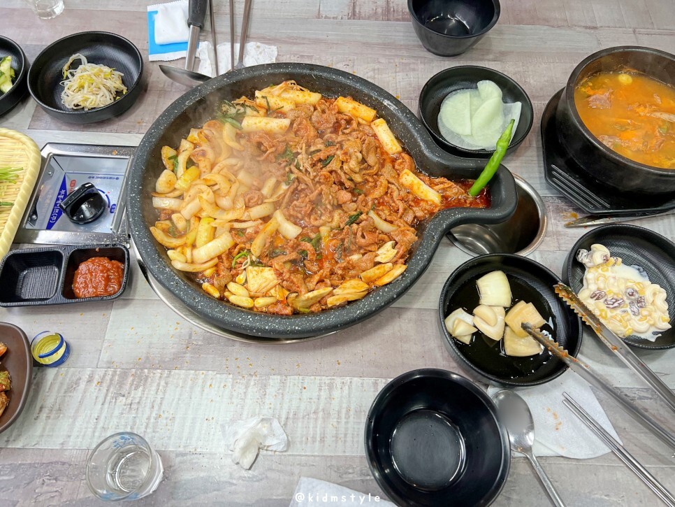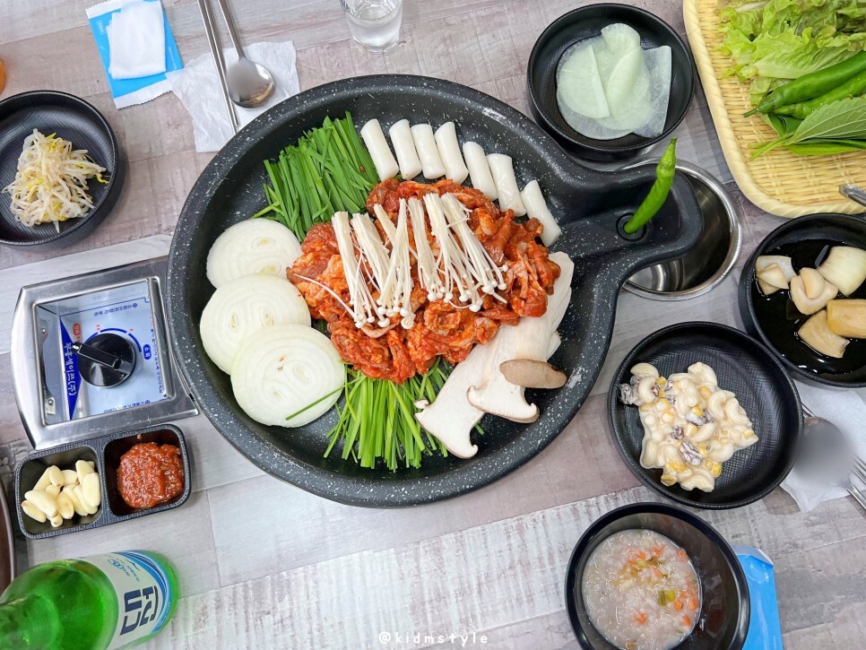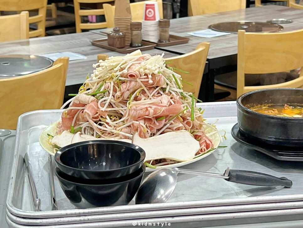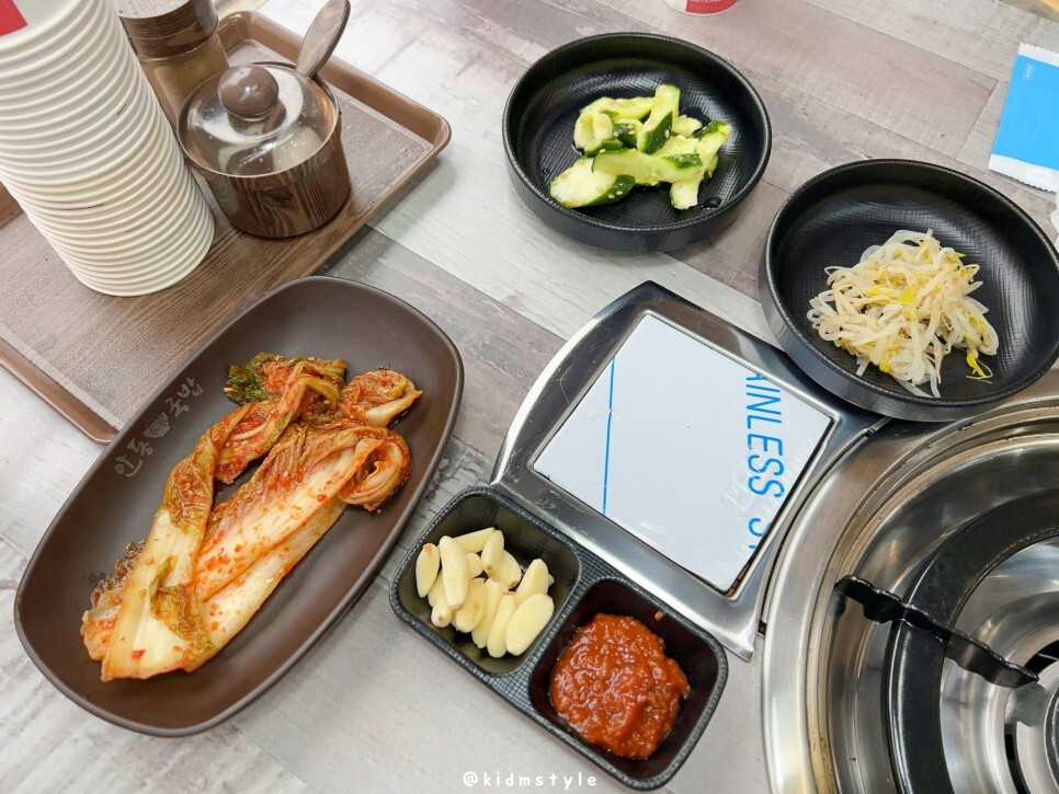 직접 담은 김치, 오이무침, 숙주나물까지 딱 좋습니다. 반찬이 조금씩 담아져 있는데요. 음식 쓰레기를 줄이기 위함이고요. 모자라면 언제든지 요청하면 됩니다.