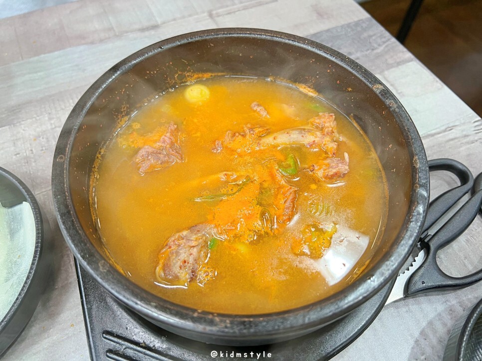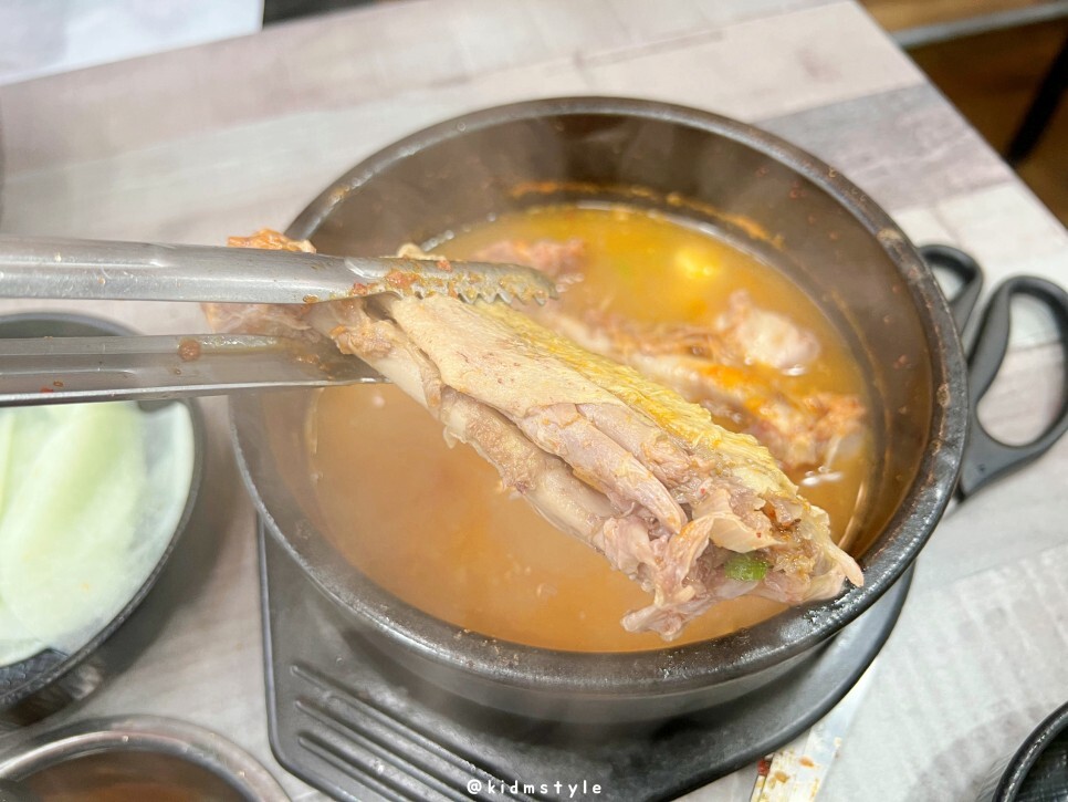 갑자기 오리탕이 나왔습니다. 잘못 나온 거 아니냐고 물으니 서비스라고 하시네요. 국밥 뚝배기 사이즈라 양이 꽤 많아요.