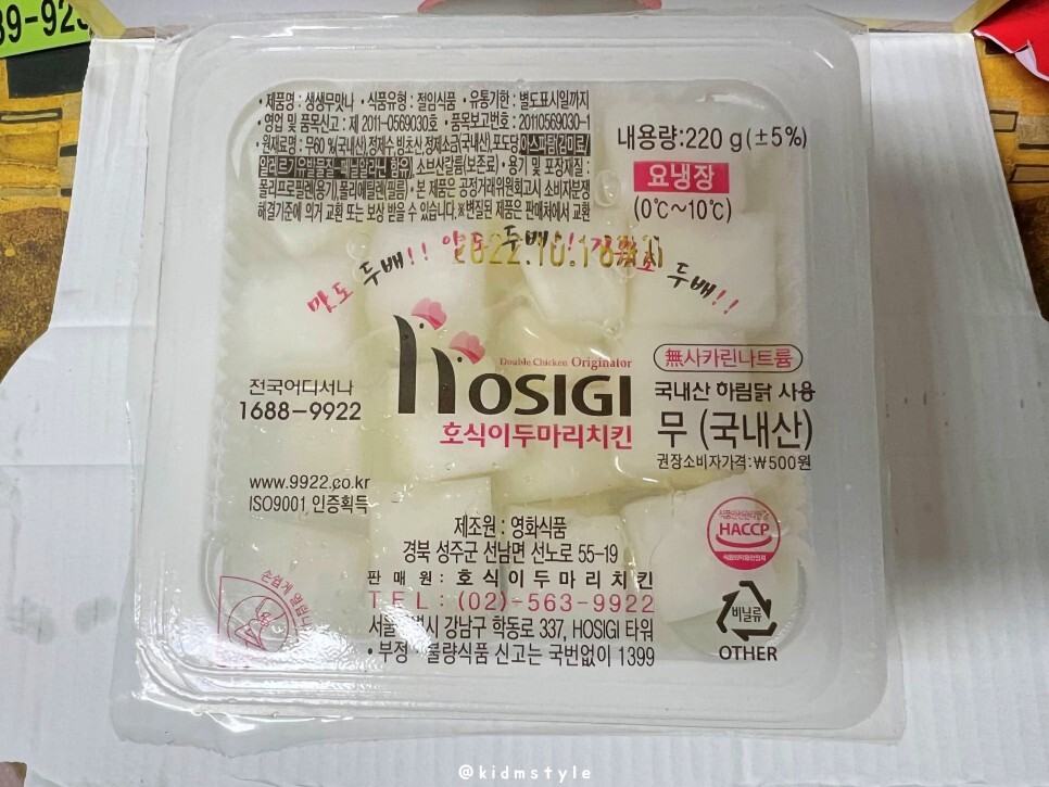 호식이 자체 제작 치킨무도 반갑습니다. 입맛이 돌고 도나 봅니다. 20대 때는 이 국물을 참 잘 마시다가 30대 초반부터 한동안은 국물을 버리기도 했고 지금은 또 국물을 잘 마십니다. 희한하죠?