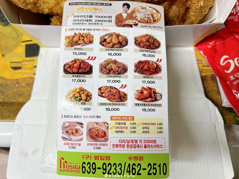 구 범일점, 수정점을 보니 범일동 쪽에서 영업하다가 수정동에 자리를 잡으신 거 같네요. 거의 5년 만에 맛보는 호식이두마리치킨입니다.