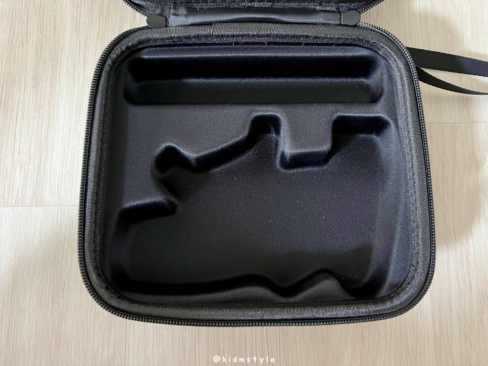 완충재를 꺼내보니 단단하면서 약간의 유연함이 있는 내부 케이스가 눈에 들어옵니다. 짐벌과 부품이 딱 들어가게끔 성형이 된 틀입니다. 흔들림 없이 보관할 수 있는 것도 이런 케이스의 주요 기능입니다.