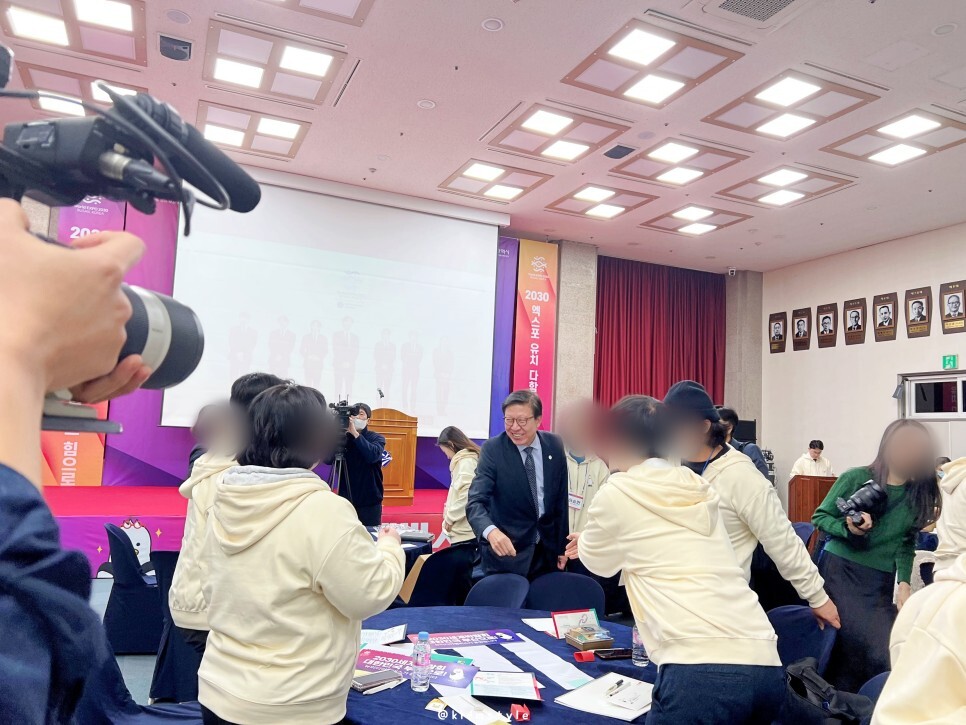 사전행사가 끝나고 장내 정리 타임에 갑자기 박형준 부산시장님이 등장하십니다. 조금 빨리 오셔서 멤버스 한 명 한 명 악수와 함께 격려의 말씀을 전해 주시네요. 저 역시 악수하고 덕담 한 마디 들었습니다. 2030 세계박람회 유치를 위해 불철주야 뛰어다니시는 모습 참 멋집니다.